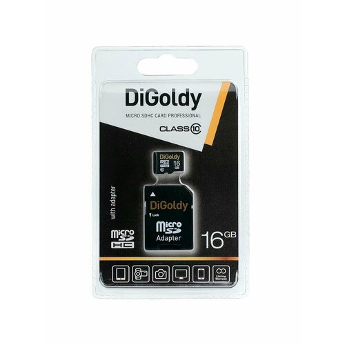 Карта памяти Digoldy microSDHC 16 ГБ Class 10, адаптер на SD