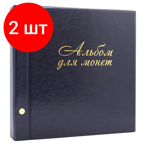 Комплект 2 шт, Альбом для монет и купюр на винтах универсальный, 224х224 мм, на 216 монет до D-45 мм, выдвижные карманы, "ДПС", 2855-201