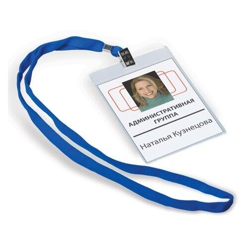 Бейджи вертикальные БОЛЬШИЕ (123х79 мм), КОМПЛЕКТ 10 шт., на синем шнурке 44 см, ДПС, 1427.В-101