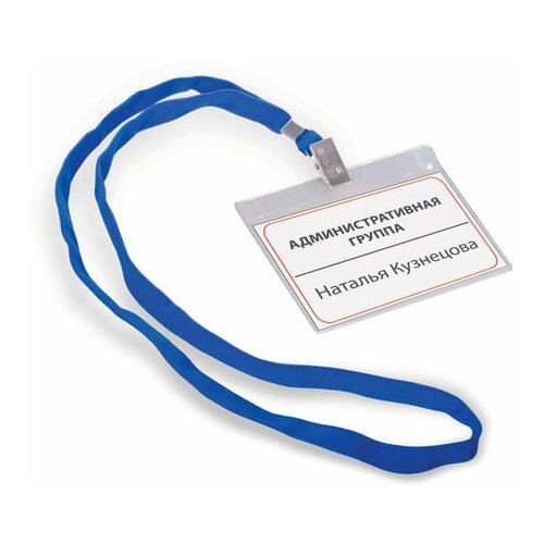 Бейджи горизонтальные большие (87х120 мм), комплект 50 шт, на синей ленте 45 см, ДПС, 1065. ГК-101