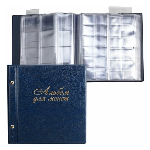 Альбом для монет и купюр на винтах универсальный, комплект 3 шт, 224х224 мм, на 216 монет до D-45 мм, выдвижные карманы, "ДПС", 2855-201