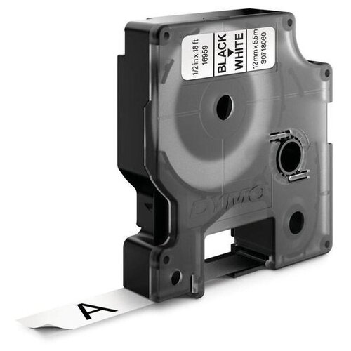 Картридж для принтера Dymo D1 12 мм х 5,5м, с полиэстр. лентой с постоян. клеем, выдерживает экстремальные темп-ры, на белой ленте / S0718060