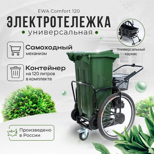 Тележка для уборки EWA / самоходная электрическая (электротележка) тележка с Алисой и GPS трекером / мусорный контейнер 120 литров и ведро 60 литров в комплекте