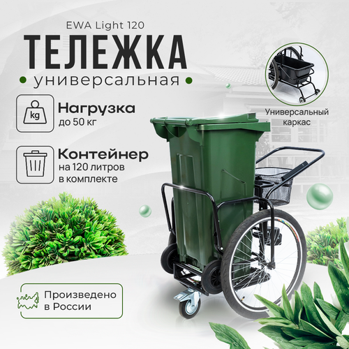 Тележка для уборки EWA многофункциональная / садовая тележка для уборки улиц / мусорный контейнер 120 литров и ведро 60 литров в комплекте