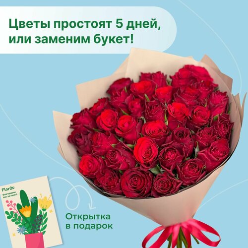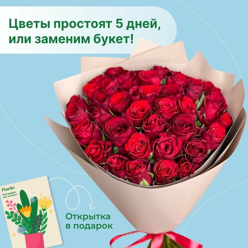 Цветы живые букет из 35 красных роз 35 см в упаковке Flor2u 102879547136