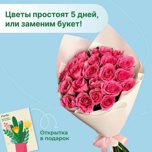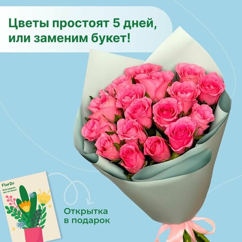 Цветы живые букет из 17 розовых роз 40 см в упаковке Flor2u 102953053038