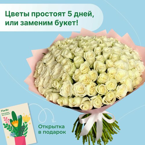 Цветы живые букет из 101 белой розы 40 см в упаковке Flor2u 102960220659