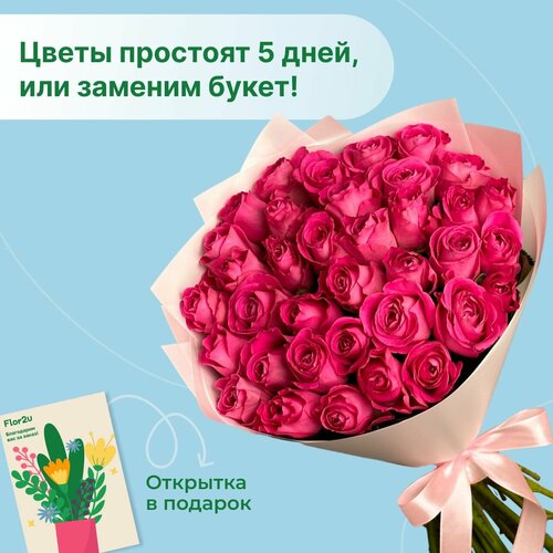 Цветы живые букет из 39 розовых роз 40 см в упаковке Flor2u 102960220668