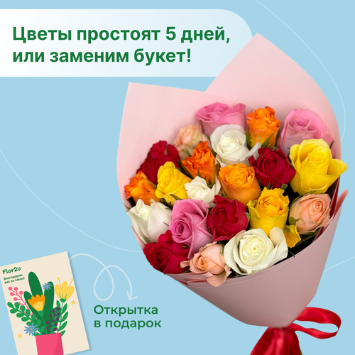 Цветы живые букет из 21 розы микс 40 см в упаковке Flor2u 102953034492