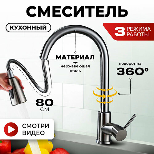 Смеситель для кухни с гибким изливом и стильным дизайном, 3 режима подачи воды, смеситель на кухню, смеситель для раковины