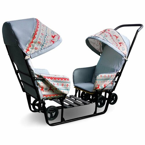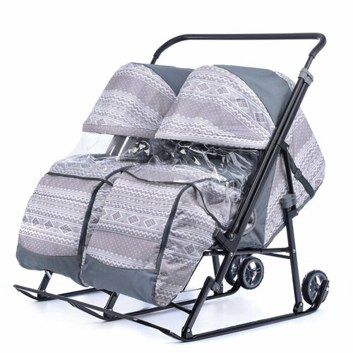 Санки-коляска с колесами детские для двойни складные GALAXY "Близняшки" (финляндия серая)