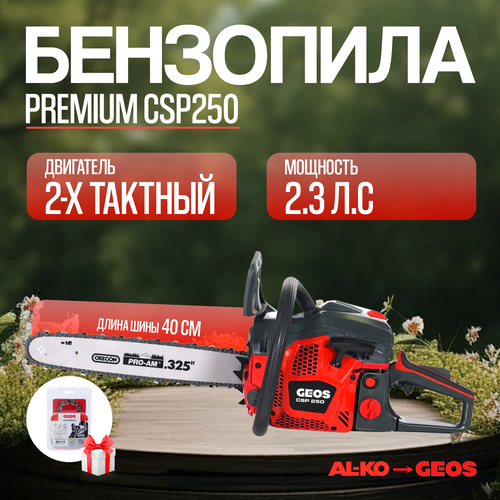 Бензопила цепная GEOS Premium CSP250, длина шины 40 см, мощность 2,3 л. с, пильная цепь в подарок