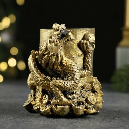 Карандашница "Дракон" с позолотой, 10х6х6см