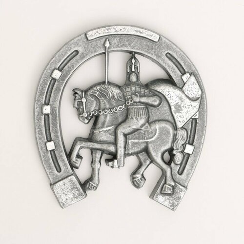 Подвесной декор "Подкова Георгий Победоносец" сталь с посеребрением, 15х17см