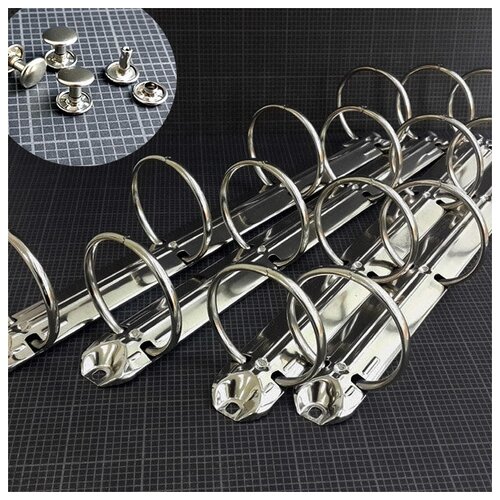 Металлический Кольцевой механизм, цвет: серебро, на 4 кольца, диаметр колец 20 мм, Длина механизма 21 см. цена за 5 штук+хольнитены