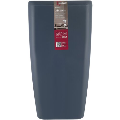 Горшок с автополивом InGreen коллекция Munchen, 20 л, квадратный , с внутренней вставкой 8 л, квадратный, вулканический серый