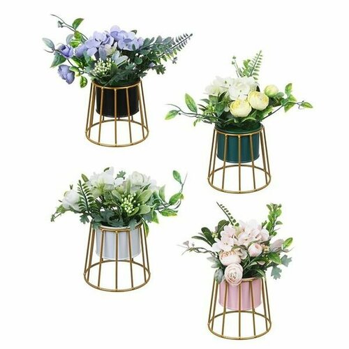 Цветочная композиция в металлическом кашпо, (в ассортименте) , 11х21 см, арт 1 LADECOR