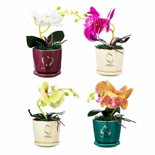 Цветок искусств в горшке 7*7*17,2см, в виде орхидеи, пластик (в ассортименте)