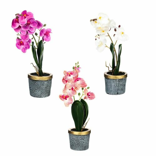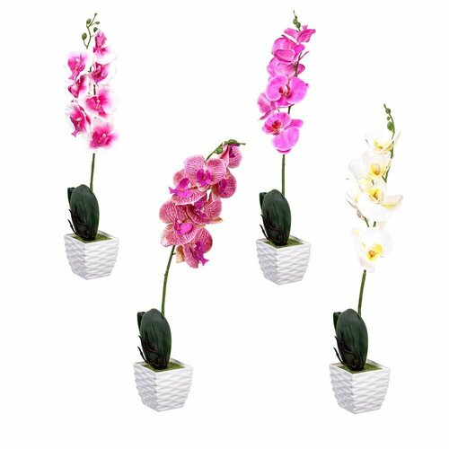 Цветочная композиция Орхидеи, в декоративном горшке, пластик, 45см, (цвет в ассортименте)LADECOR