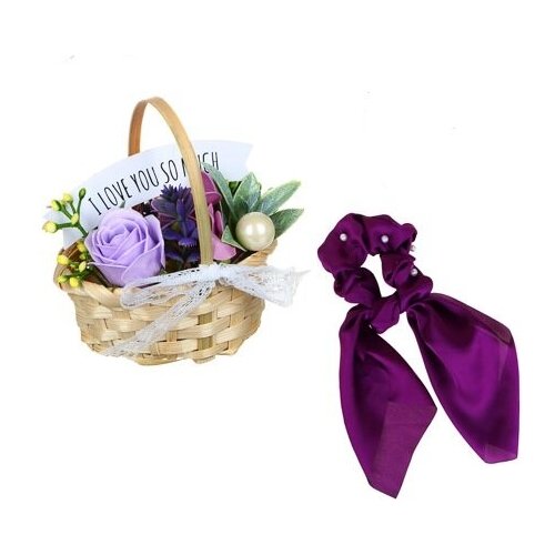 Набор подарочный Букет из мыльных лепестков с резинкой для волос, 20,5x13,5
