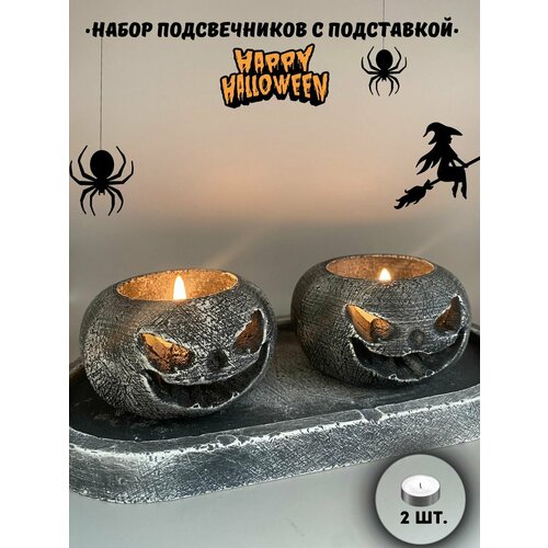 Подсвечники Тыква с подставкой набор декор на Хэллоуин