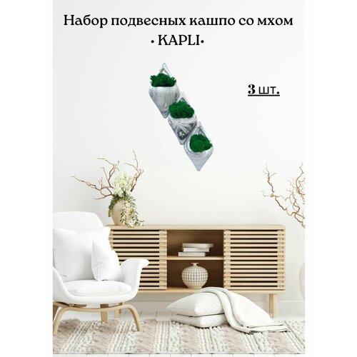 Набор подвесных настенных кашпо из гипса со мхом
