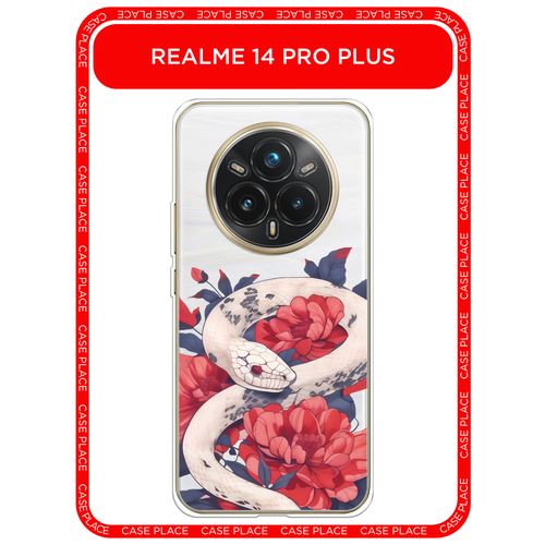 Чехол на Realme 14 Pro+ / Реалми 14 Про+ с принтом Белая змея в цветах, прозрачный