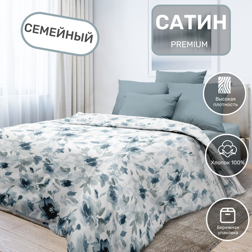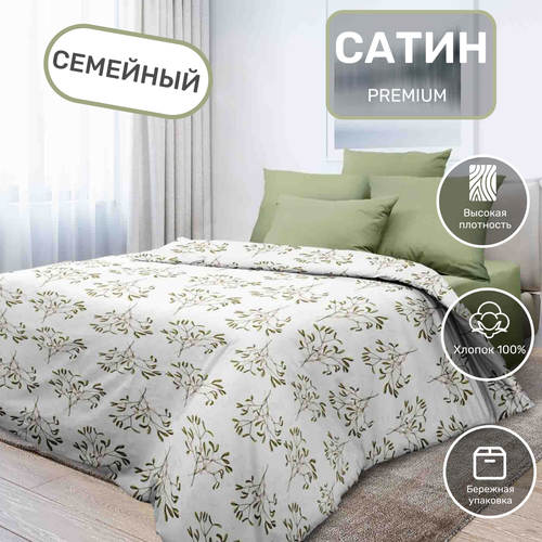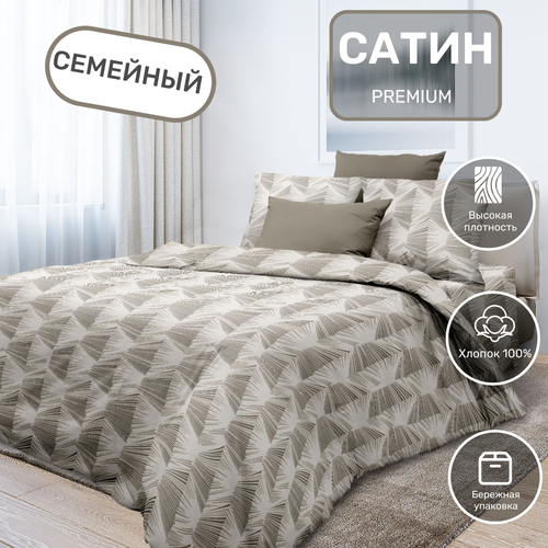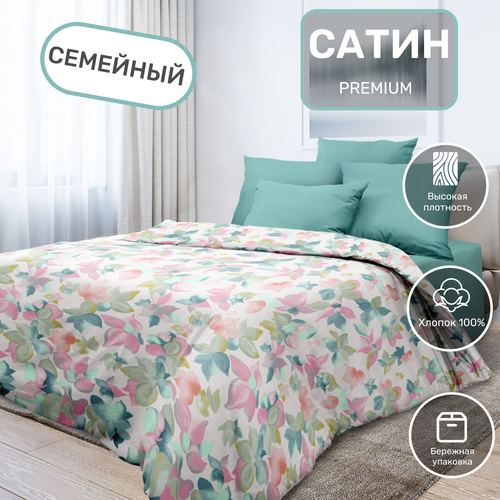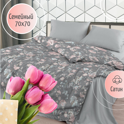 Постельное белье семейное с 2 пододеяльниками на молнии, ткань сатин наволочки 70х70