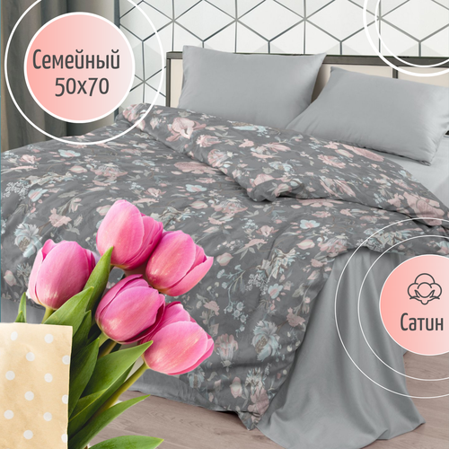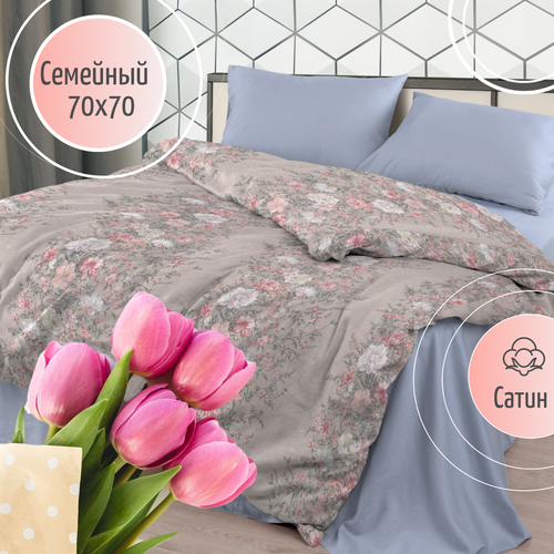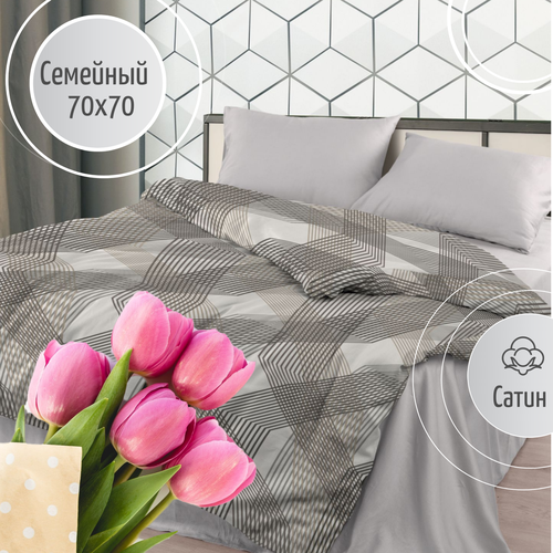 Постельное белье Семейный комплект с 2 пододеяльниками хлопок Сатин 70х70