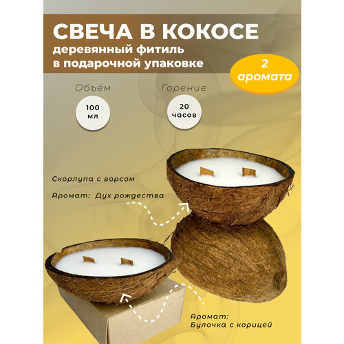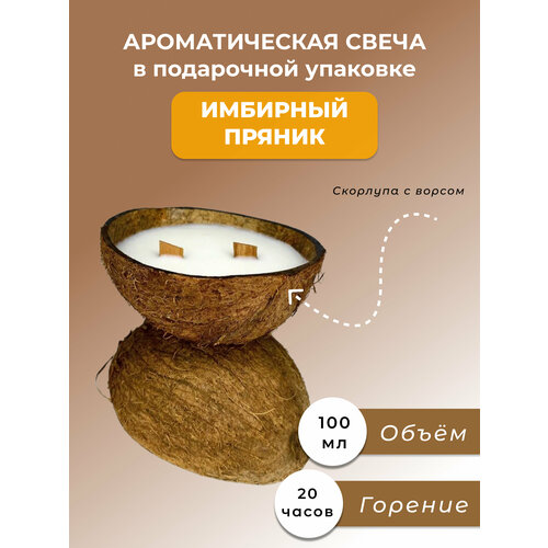 Свеча в кокосе в подарочной упаковке (Имбирный пряник) | LAVLDI