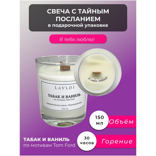 Свеча с тайным посланием в стакане - 150 мл (Табак и Ваниль) | LAVLDI
