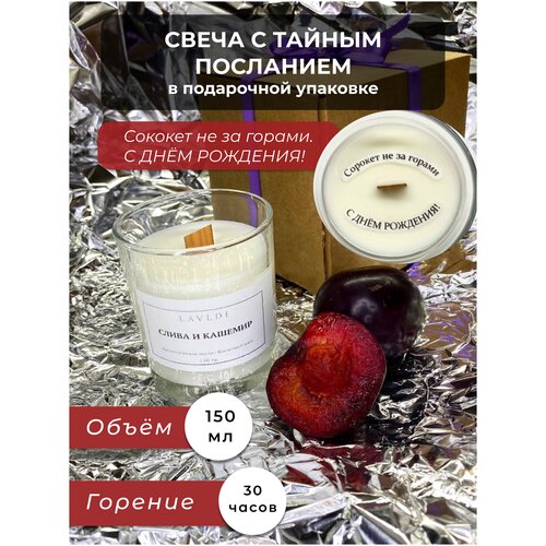 Свеча с тайным посланием в стакане - 150 мл (Слива и Кашемир) | LAVLDI