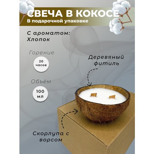 Свеча ручной работы в кокосе в подарочной упаковке (Хлопок)| LAVLDI