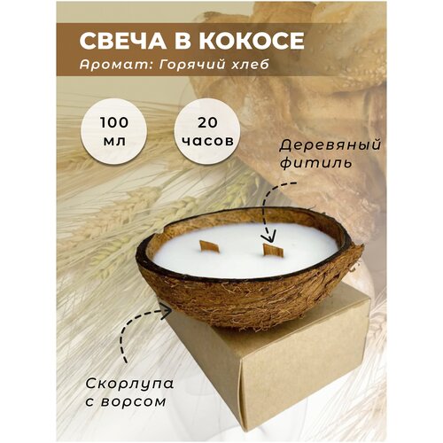 Ароматическая свеча ручной работы в кокосе (Горячий хлеб)