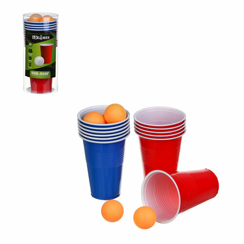 LDGames Игра для компании, ПИВ понг, 6 шариков, 12 стаканов, пластик