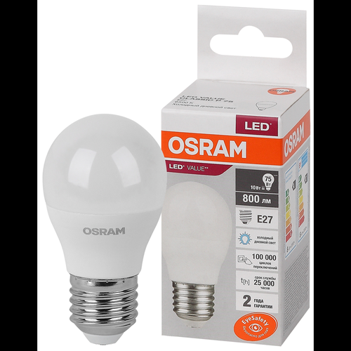 Светодиодная лампа OSRAM LV CLP 75 10SW/865 220-240V FR E27 800lm 180* 25000h