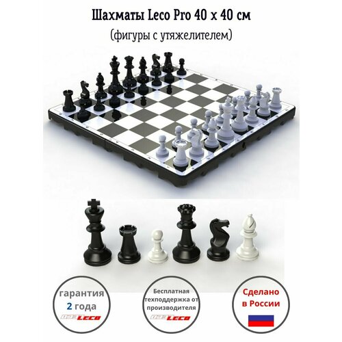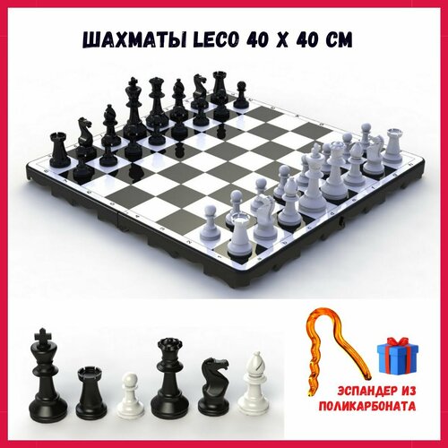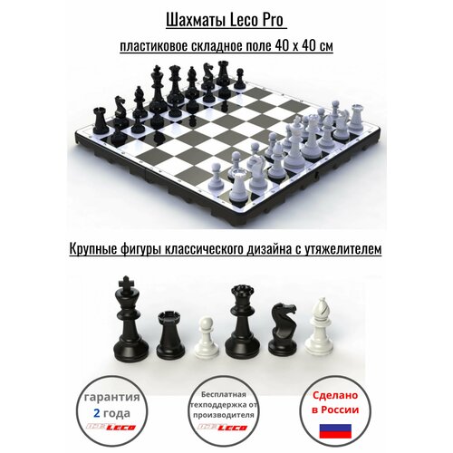 Шахматы пластиковые Leco Pro, складное поле 40х40 см, крупные фигуры с утяжелителем