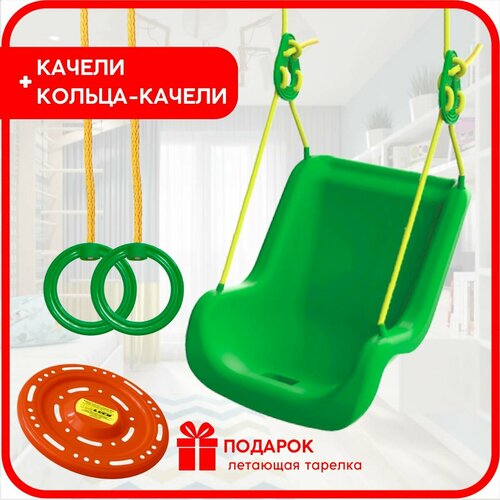 Качели подвесные детские со спинкой Leco, качели-кольца, для детей от 3 лет зеленые
