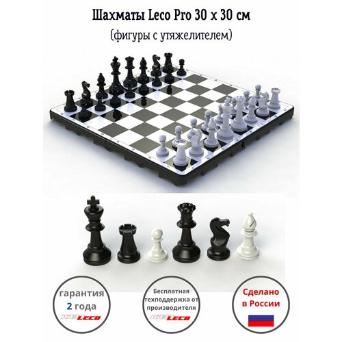 Шахматы пластиковые Leco Pro, складное поле 30х30 см, крупные фигуры с утяжелителем