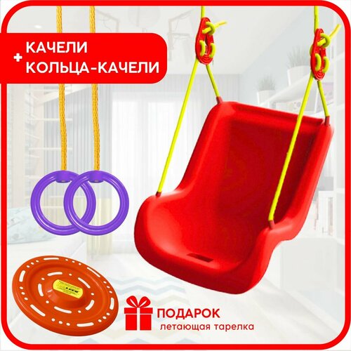 Качели подвесные детские со спинкой Leco, качели-кольца, для малышей до 3 лет красные