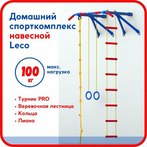 Детский спортивный комплекс, распорный (лестница, кольца, канат, качели)