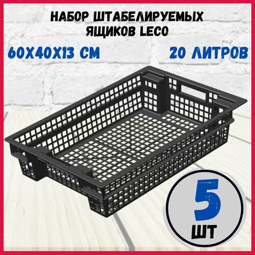 Набор из 5 универсальных пластиковых ящиков размером 60х40х13 для сбора, хранения и транспортировки овощей, фруктов, ягод, рассады, садового инструмента и инвентаря, игрушек и прочих мелочей
