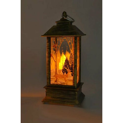 Елочное украшение светильник новогодний фонарь с подсветкой "Олень в зимнем лесу" 14 см