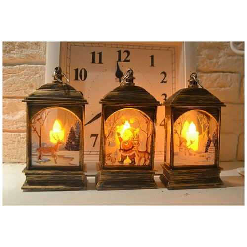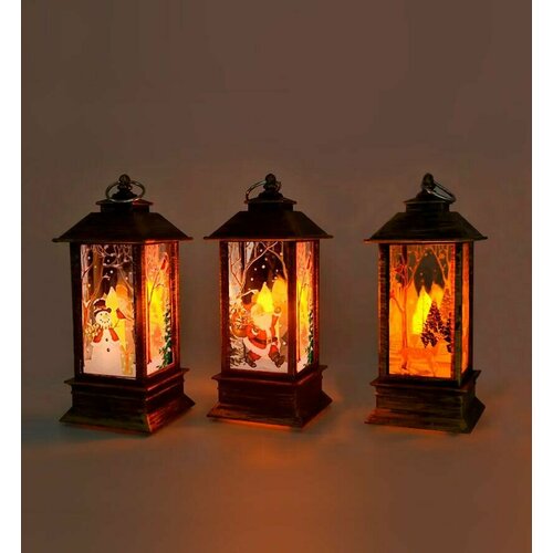 Набор светящихся елочных фонарей на елку "В зимнем лесу", "Дед Мороз", "Снеговик и белочка" 12см (3шт) Lemon Bo