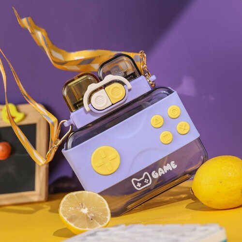 Стильный игровой поильник с ремешком и двумя носиками 750 мл /Приставка-робот сиреневый