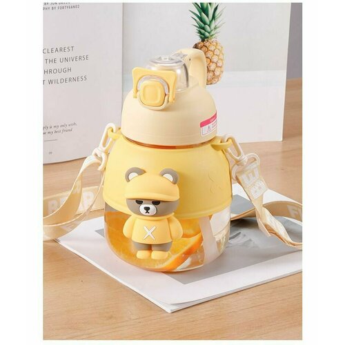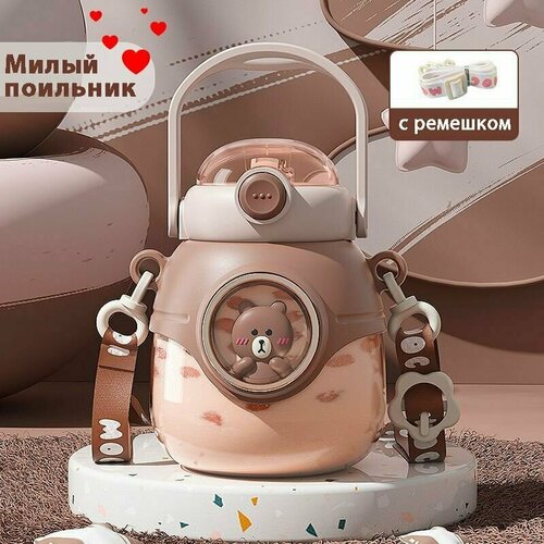 Стильный поильник с ремешком и кнопкой 1100 мл /Мишка