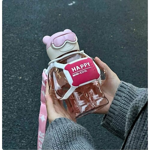Стильный поильник с ремешком и кнопкой 800 мл /Розовый Медведь Bear