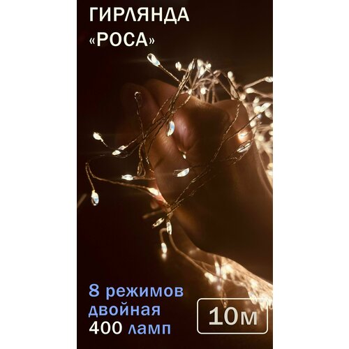 Гирлянда "Роса" медная, двойное кручение, 400 ламп, теплый, 10 м, 220В