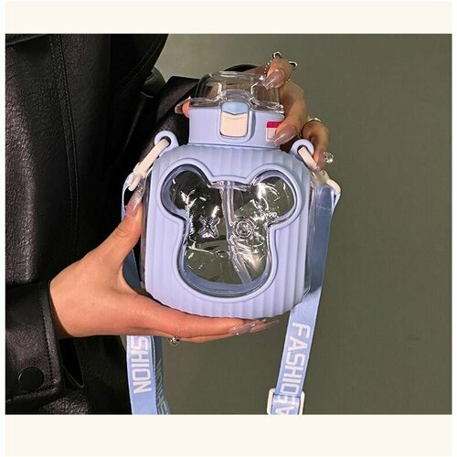 Стильный поильник с ремешком и кнопкой 900 мл /Голубой Bearbrick