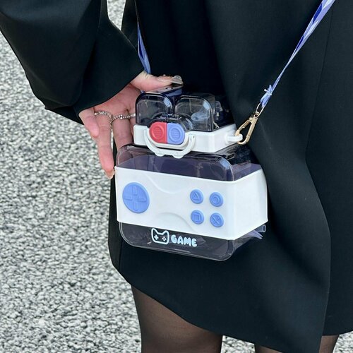 Стильный игровой поильник с ремешком и двумя носиками 750 мл /Приставка-робот